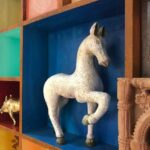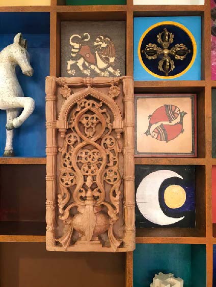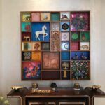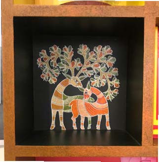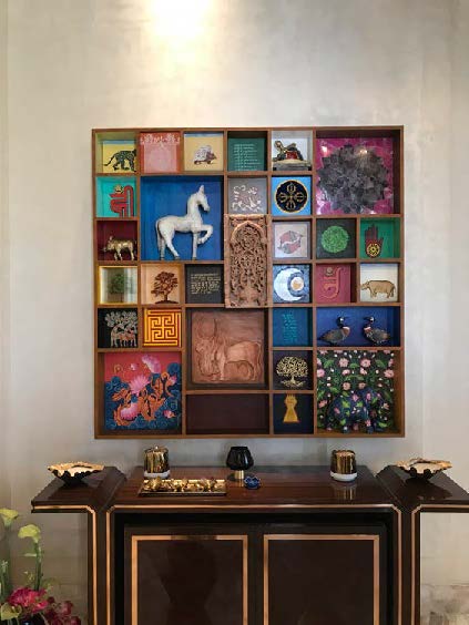 Tirthankara’s were not founders of any religion, but great omniscient teachers who lived at various times in man’s cultural history. They accomplished the highest spiritual goal of existence and then taught their contemporaries the way to reach it by crossing over to the safe shores of spiritual purity. Each new tirthankara preaches the same basic Jain philosophy, but they give the Jain way of life subtly different forms in order to suit the age and the culture in which they teach. In what Jains call the present agethere have been 24 tirthankaras. The Artwork is an abstract representation of the 24 tirthankaras done in varied styles by artists across India.