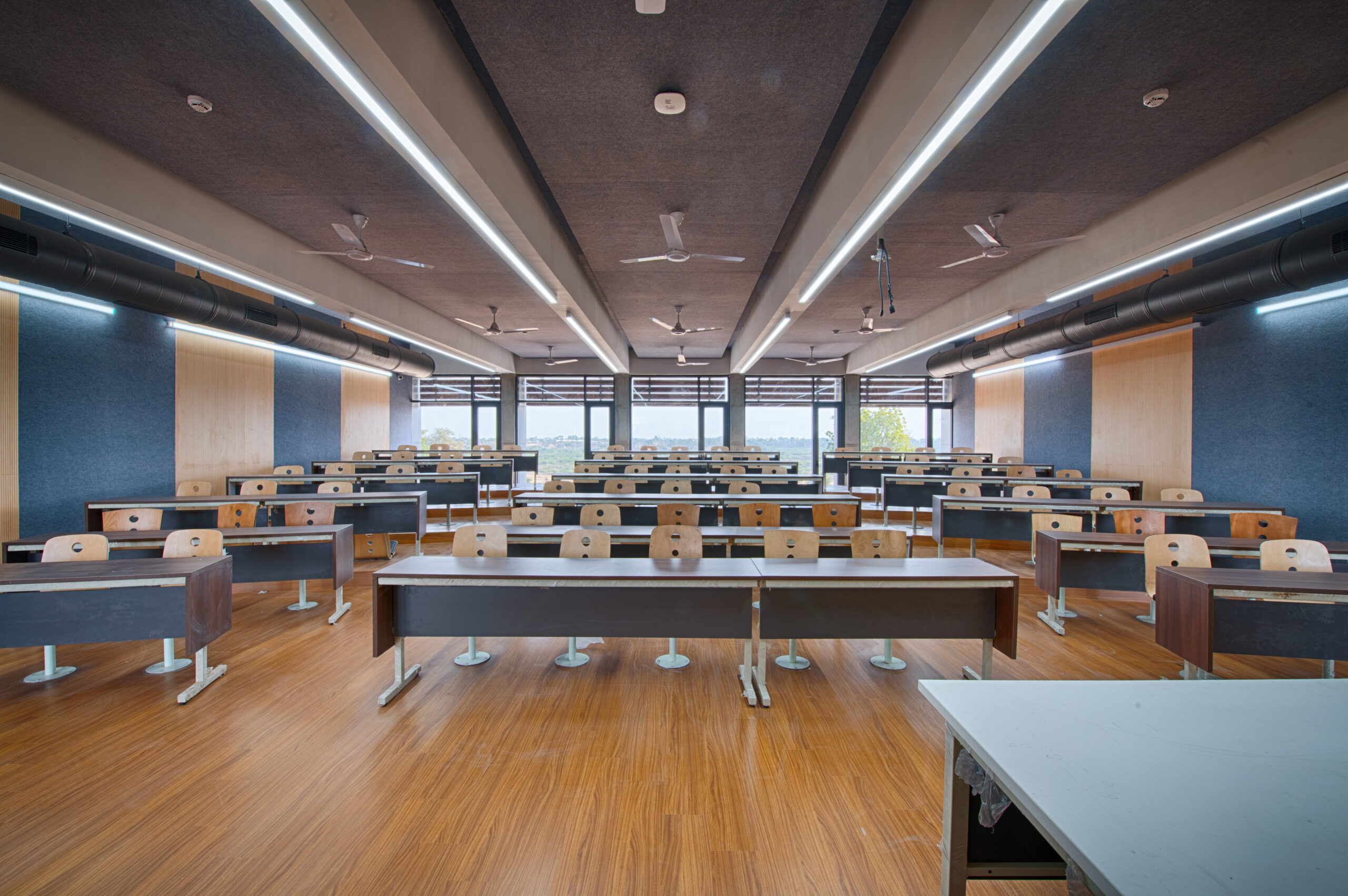 Lecture Rooms, Class rooms and Computer labs are designed keeping in mind the image and intent of the institution as a place for Advanced Research. The material and colour palette used in the design reflect simplicity and modernity which becomes a part of the identity of the institution .